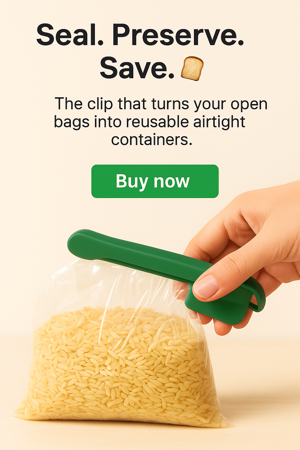 Stop wasting food and ingredients Save money with the kitchen bag clip.